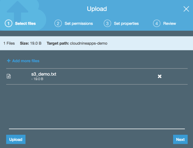 - Specify the permissions. Here you can choose to override the permissions just for the object(s) being uploaded. In most cases, you’ll just go with the defaults.